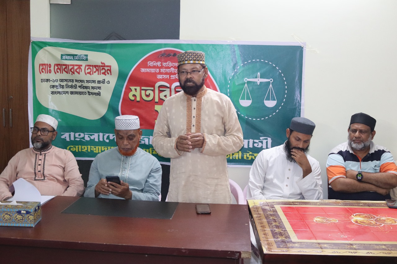 সভায় আরও উপস্থিত ছিলেন মোহাম্মদপুর থানা পশ্চিম জামায়াতের আমীর মোঃ মাসুদুজ্জামান এবং ঢাকা-১৩ আসনের নির্বাচন পরিচালক মোঃ শফিউর রহমান।