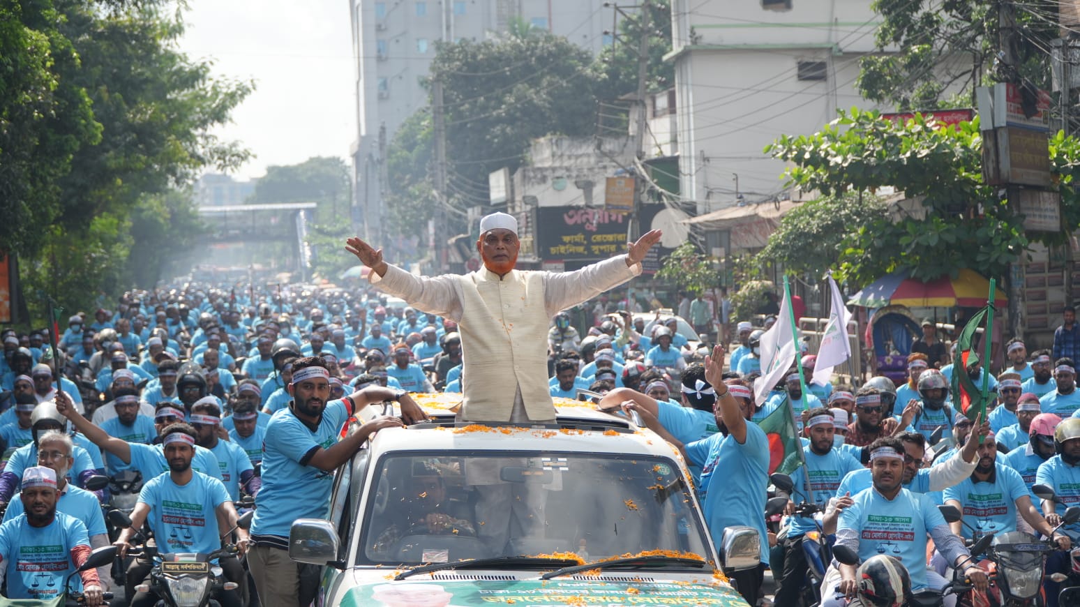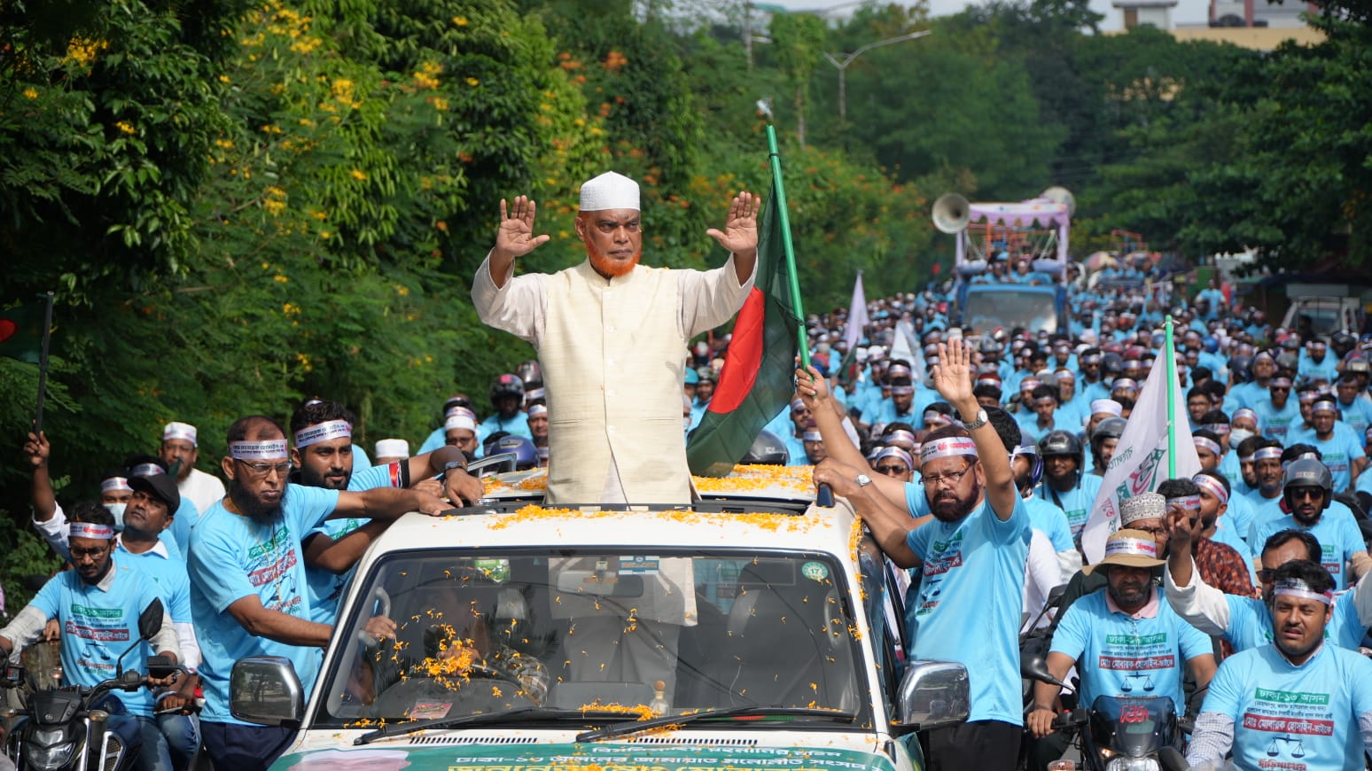 শোভাযাত্রায় কয়েক হাজার মোটরসাইকেল, প্রাইভেট কার ও পিকআপ ভ্যান অংশ নেয়। রাস্তার মোড়ে মোড়ে উৎসুক জনতা ভিড় করেন এবং তারা হাত নেড়ে ও স্লোগান দিয়ে শোভাযাত্রাকে উষ্ণ অভ্যর্থনা জানান।