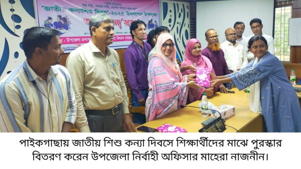 খুলনা এডিশন:: পাইকগাছায় জাতীয় কন্যা শিশু দিবস পালিত হয়েছে। এ উপলক্ষে উপজেলা প্রশাসন ও উপজেলা মহিলা বিষয়ক কর্মকর্তার কার্যালয় আলোচনা সভা, চিত্রাঙ্কন প্রতিযোগিতা ও পুরস্কার বিতরণী অনুষ্ঠানের আয়োজন করে। বুধবার