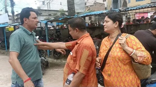 থানা চত্বরে দুই স্বামীর এক স্ত্রী নিয়ে টানাটানি