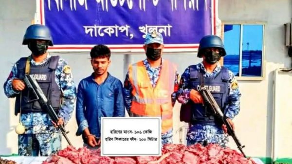 সুন্দরবনের নলিয়ানে ১০৬ কেজি হরিণের মাংস ও ফাঁদসহ ১ জন হরিণ শিকারিকে আটক করেছে কোস্ট গার্ড পশ্চিম জোন( মোংলা)। শনিবার ( ২৫ অক্টোবর) বিকালে কোস্ট গার্ড মিডিয়া কর্মকর্তা লেফটেন্যান্ট