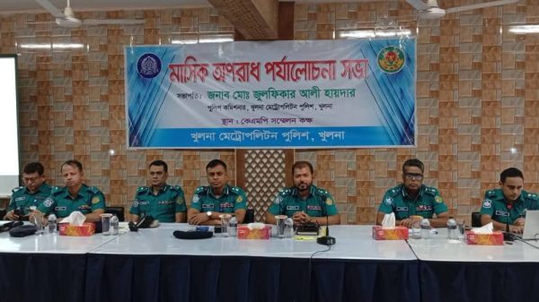 এডিশন ডেস্কঃ খুলনা নগরীর বয়রাস্থ পুলিশ লাইন্স লাউঞ্জ-২ তে আজ ২১ অক্টোবর সকাল ৯.৩০ ঘটিকায় কেএমপি’র মাসিক অপরাধ পর্যালোচনা সভা অনুষ্ঠিত হয়। সভাপতিত্ব করেন খুলনা মেট্রোপলিটন পুলিশ কমিশনার জনাব মোঃ