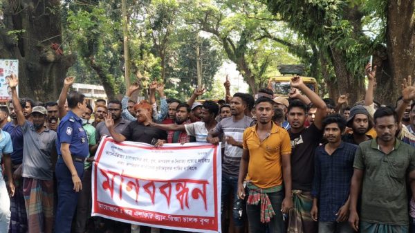 খুলনা এডিশন:: যশোরের শার্শায় একের পর এক ভ্যান চালকদের গুম খুনের প্রতিবাদ ও নিরাপত্তার দাবিতে মানববন্ধন অনুষ্ঠিত হয়েছে। বুধবার (১৫ অক্টোবর) বেলা ১২ টার দিকে উপজেলা পরিষদের সামনে
