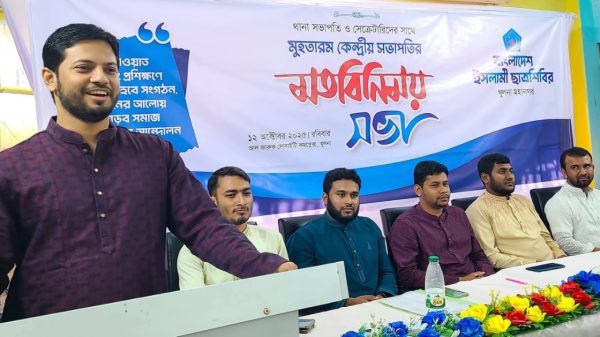 খুলনা এডিশন:: খুলনায় থানা সভাপতি ও সেক্রেটারিদের সাথে মতবিনিময় করলেন ইসলামী ছাত্রশিবিরের কেন্দ্রীয় সভাপতি জাহিদুল ইসলাম। সোমবার ১৩ অক্টোবর দুপুরে দলীয় কার্যালয়ে এই মতবিনিময় সভা অনুষ্ঠিত হয়। কেন্দ্রীয় কার্যকরী