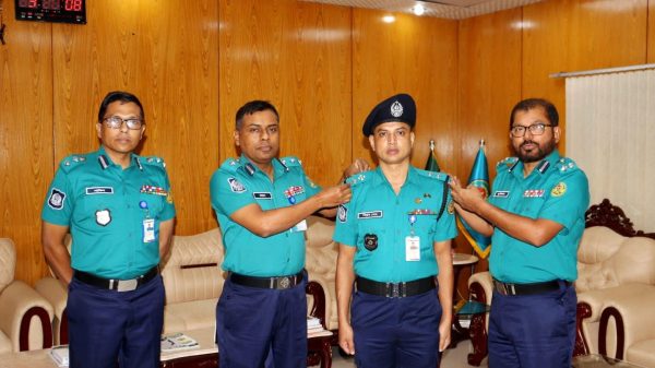 খুলনায় পদোন্নতিপ্রাপ্ত পুলিশ সদস্যকে র্যাংক ব্যাজ পরালেন খুলনা মেট্রোপলিটন পুলিশ কমিশনার সোমবার ১৩ অক্টোবর বিকেলে কেএমপি সদর দপ্তরে এএসআই (নিরস্ত্র) থেকে এসআই (নিরস্ত্র) পদে পদোন্নতি প্রাপ্ত বিপ্লব শেখকে র্যাংক