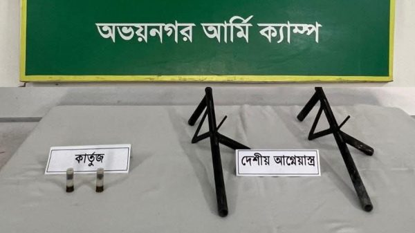 এডিশন ডেস্কঃ যশোরের অভয়নগরে সেনাবাহিনী ও পুলিশের যৌথ অভিযানে ২টি পাইপ গানসহ ২ রাউন্ড তাজা গুলি উদ্ধার করা হয়েছে। মঙ্গলবার (১৪ অক্টোবর) ভোরে উপজেলার প্রেমবাগ ইউনিয়নের মাগুরা গ্রামের শেখপাড়া এলাকা