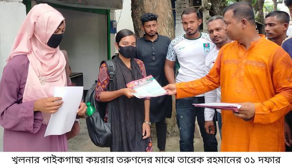 খুলনা এডিশন:: খুলনার পাইকগাছা ও কয়রার বিভিন্ন স্থানে গণসংযোগ ও বিএনপির ভারপ্রাপ্ত চেয়ারম্যান তারেক রহমানের ৩১ দফার লিফলেট বিতরণ করেছেন কেন্দ্রীয় ছাত্রদলের সাবেক সহ সভাপতি রফিকুল ইসলাম রফিক। শুক্রবার সকালে