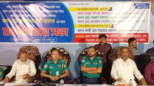 এডিশন ডেস্কঃ খুলনা বিভাগীয় ট্রাক শ্রমিক ইউনিয়ন ও কাঁচা বাজার আড়ৎ মালিক সমিতির আয়োজনে গত ৭ অক্টোবর সন্ধ্যায় আইন শৃঙ্খলার উন্নতি, মাদক কে না বলা ও সুষ্ঠু নিয়মন্ত্রান্তিক ভাবে আইন