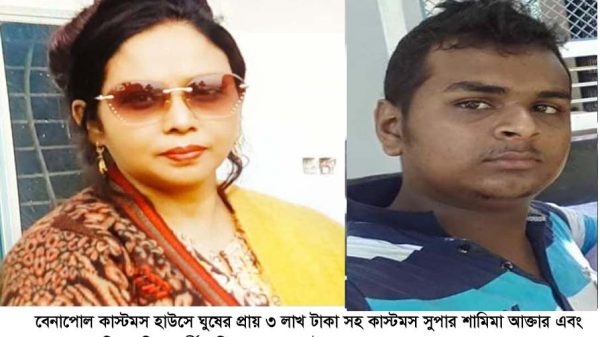 খুলনা এডিশন:: বেনাপোল কাস্টমস হাউসে দুর্নীতি দমন কমিশন (দুদক) অভিযান চালিয়ে ঘুষের প্রায় ৩ লাখ টাকাসহ রাজস্ব কর্মকর্তা শামীমা আক্তার ও তার সহযোগী এনজিও সদস্য হাসিবুরকে হাতেনাতে আটক করেছে।