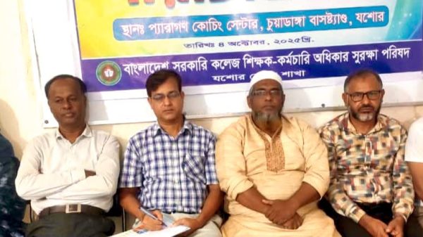 খুলনা এডিশন:: সরকারি কলেজ শিক্ষক-কর্মচারী অধিকার সুরক্ষা পরিষদ, যশোর জেলা কমিটির এক পরিচিতি সভা শহরের চুয়াডাঙ্গা বাসস্ট্যান্ড এলাকায় অনুষ্ঠিত হয়েছে। সভায় প্রধান অতিথি ছিলেন সংগঠনের কেন্দ্রীয় কমিটির সাধারণ