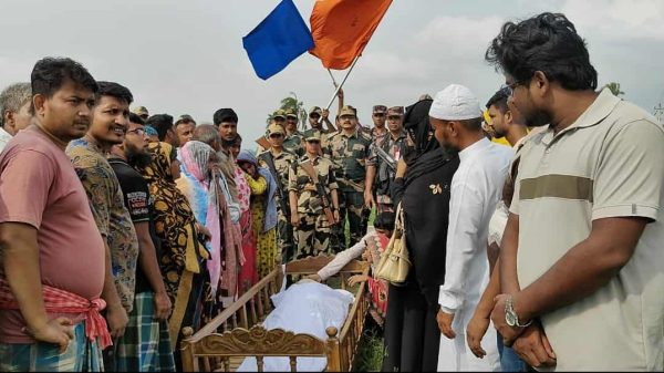 এডিশন ডেস্ক:: সীমান্তের শূন্যরেখায় শেষবারের মতো আত্মীয়দের লাশ দেখার সুযোগ পেয়েছেন বাংলাদেশি স্বজনরা। বুধবার (১ অক্টোবর) দুপুর আড়াইটার দিকে যশোর ব্যাটালিয়ন (৪৯ বিজিবি) ও ভারতের ৬৭ বিএসএফের উদ্যোগে পতাকা