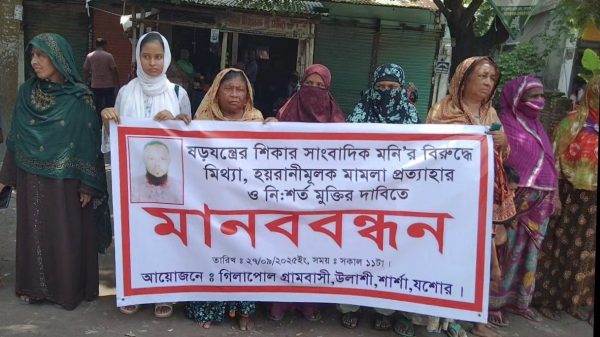 এডিশন ডেস্ক:: যশোরের শার্শায় যড়যন্ত্রের শিকার জাতীয় দৈনিক দিনকাল ও যশোর থেকে প্রকাশিত দৈনিক লোকসমাজ পত্রিকার শার্শা উপজেলা প্রতিনিধি সাংবাদিক মনিরুল ইসলাম মনির বিরুদ্ধে মিথ্যা হয়রানি মুলক মামলা প্রত্যাহার ও