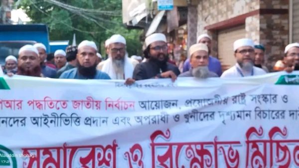এডিশন ডেস্ক:: খুলনা জেলার পাইকগাছায় পিআর পদ্ধতিতে জাতীয় নির্বাচন আয়োজন, প্রয়োজনীয় রাষ্ট্র সংস্কার ও জুলাই সনদের আইনী ভিত্তি প্রদান এবং অপরাধী ও খুনিদের দৃশ্যমান বিচারের দাবিতে বিক্ষোভ মিছিল ও সমাবেশ