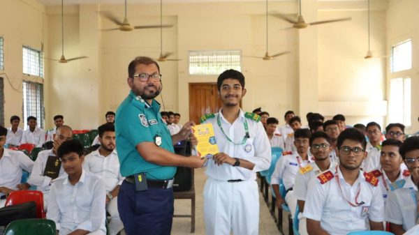 খুলনা এডিশন:: ছাত্রছাত্রীদের নিরাপদে রাস্তা ব্যবহারের নিয়ম-কানুন সম্পর্কে অবহিত করার জন্য কেএমপি’র পক্ষ থেকে নগরীর বিভিন্ন স্কুলে উপস্থিত হয়ে ‘রোড সেফটি’র উপর নির্মিত ভিডিও প্রদর্শন করছেন। ছাত্রছাত্রীরা