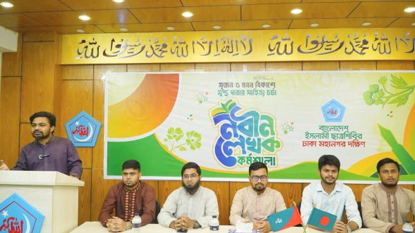 এডিশন ডেস্ক “নবীন লেখক কর্মশালা ২০২৫”-এর আয়োজন করে বাংলাদেশ ইসলামী ছাত্রশিবির, ঢাকা মহানগর দক্ষিণ শাখা। আয়োজনে প্রধান অতিথি হিসেবে উপস্থিত ছিলেন বাংলাদেশ ইসলামী ছাত্রশিবিরের কেন্দ্রীয় সাহিত্য সম্পাদক ডা. নাঈম