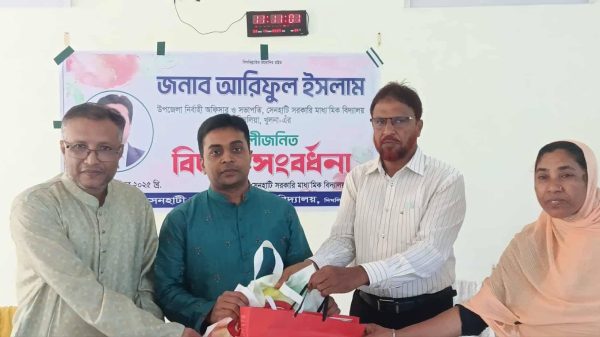 এডিশন ডেস্ক:: খুলনা জেলার দিঘলিয়া উপজেলার উপজেলা নির্বাহী কর্মকর্তা (ইউএনও) ও সেনহাটী সরকারি মাধ্যমিক বিদ্যালয়ের সভাপতি জনাব আরিফুল ইসলামের বদলীজনিত বিদায় সংবর্ধনা আজ বিদ্যালয় প্রাঙ্গণে অনুষ্ঠিত হয়েছে। বিদ্যালয়ের পক্ষ