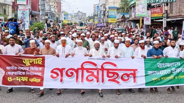 খুলনা এডিশন: বাংলাদেশ জামায়াতে ইসলামী ঢাকা মহানগরী উত্তর ও দক্ষিণের যৌথ উদ্যোগে জুলাই জাতীয় সনদের ভিত্তিতে ফেব্রুয়ারিতে নির্বাচনসহ ৫ দফা দাবিতে এক বিশাল সমাবেশ ও গণমিছিল অনুষ্ঠিত হয়েছে। শুক্রবার
