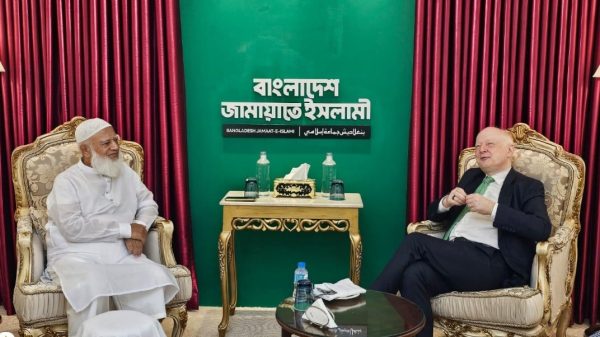 এডিশন ডেস্কঃ জামায়াত আমির ডা. শফিকুর রহমানের সঙ্গে ঢাকাস্থ জার্মানির নবনিযুক্ত রাষ্ট্রদূত ড. রুডিগার লোটজ সৌজন্য সাক্ষাৎ করেছেন। রোববার সকাল ৯টার দিকে রাজধানীর বসুন্ধরার জামায়াতের আমিরের কার্যালয়ে বৈঠক অনুষ্ঠিত হয়।