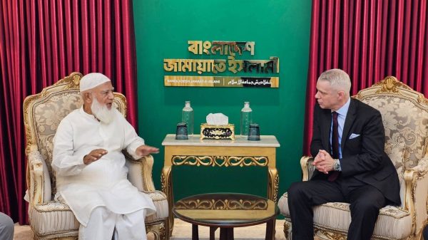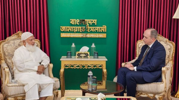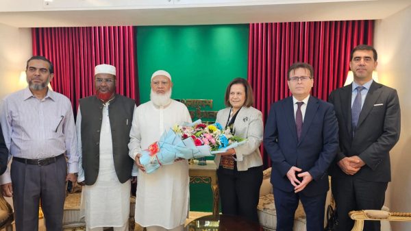 খুলনা এডিশন:: বাংলাদেশ জামায়াতে ইসলামীর আমীর ডা. শফিকুর রহমানের সঙ্গে ঢাকা সফররত তুরস্কের ফরেন অ্যাফেয়ার্স-এর ডেপুটি মিনিস্টার এ. বেরিস একিনজি-এর নেতৃত্বে তুরস্কের মান্যবর রাষ্ট্রদূত মি. রামিস সেনসহ ৪ সদস্যের উচ্চপর্যায়ের