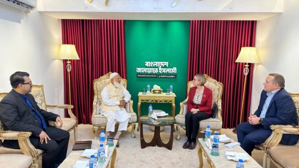 খুলনা এডিশন :: বাংলাদেশ জামায়াতে ইসলামীর আমীর ডা. শফিকুর রহমানের সঙ্গে তাঁর বসুন্ধরার কার্যালয়ে ঢাকাস্থ মান্যবর বৃটিশ হাইকমিশনার মিস সারাহ কুক-এর এক সৌজন্য বৈঠক অনুষ্ঠিত হয়। আজ ৪ ডিসেম্বর